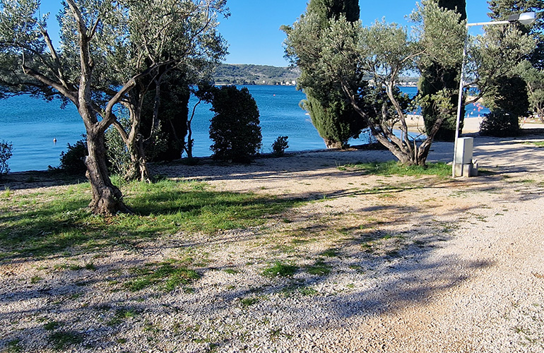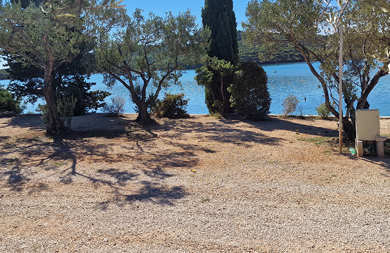 Kamp je ukupne širine 50m na najširem dijelu i ukupne dužine 200m. Specifičan klinasti oblik kampa osigurava blizinu mora, struje i sanitarija svim parcelama podjednako.