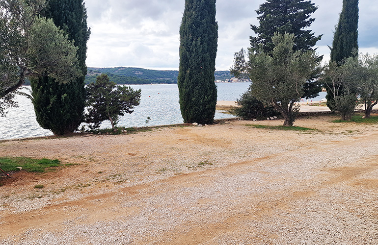 Kamp je ukupne širine 50m na najširem dijelu i ukupne dužine 200m. Specifičan klinasti oblik kampa osigurava blizinu mora, struje i sanitarija svim parcelama podjednako.