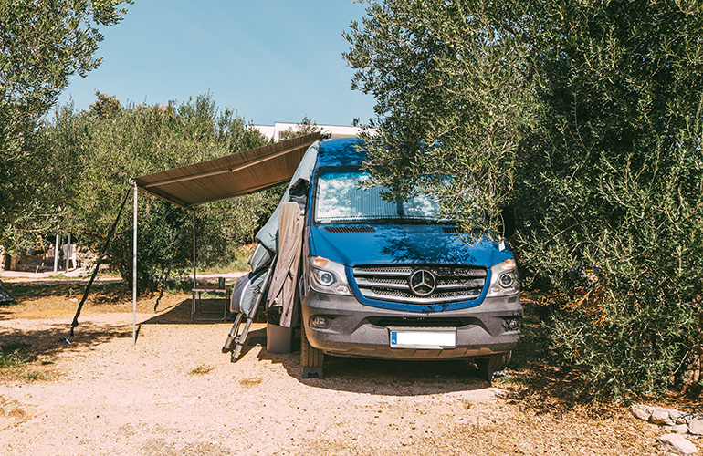 U zavisnosti od veličine i oblika kamp kućice ili šatora, možda neće biti moguće parkirati i vozilo na istu parcelu. Vozilo se tada parkira na prvo slobodno mjesto namjenjeno parkiranju vozila u kampu.